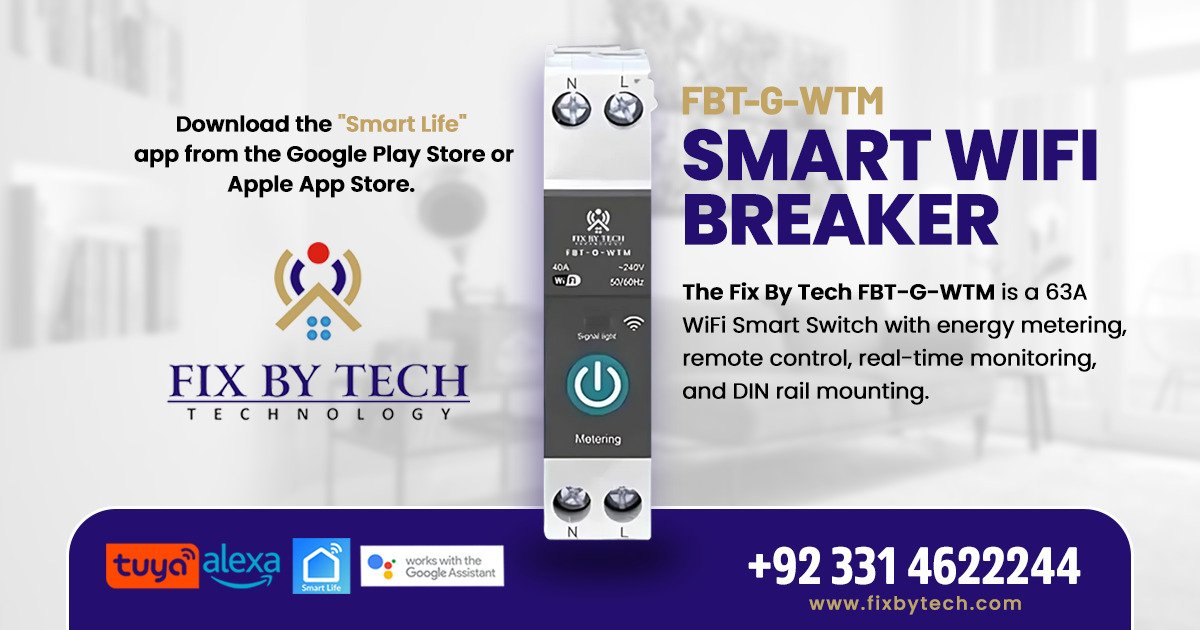 Welcome to the Fix by Tech – Technologies an innovative startup establish in 2023 with mission of transforming electrical interaction. We offer smart home devices in pakistan modern products like smart MCBs and advance voltage protection devices, lead the way in intelligent power management. Our goal is to combine electrical safety and efficiency, and we will achieve this with the help of experts experienced in both residential and commercial settings.