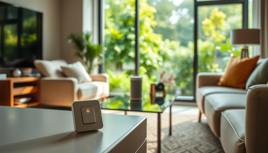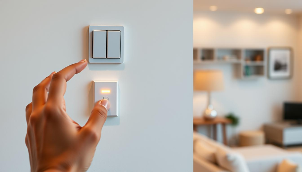 Smart mini switches also boost home security. They let you control lights and appliances from anywhere. This makes it seem like someone is home, even if you’re not.